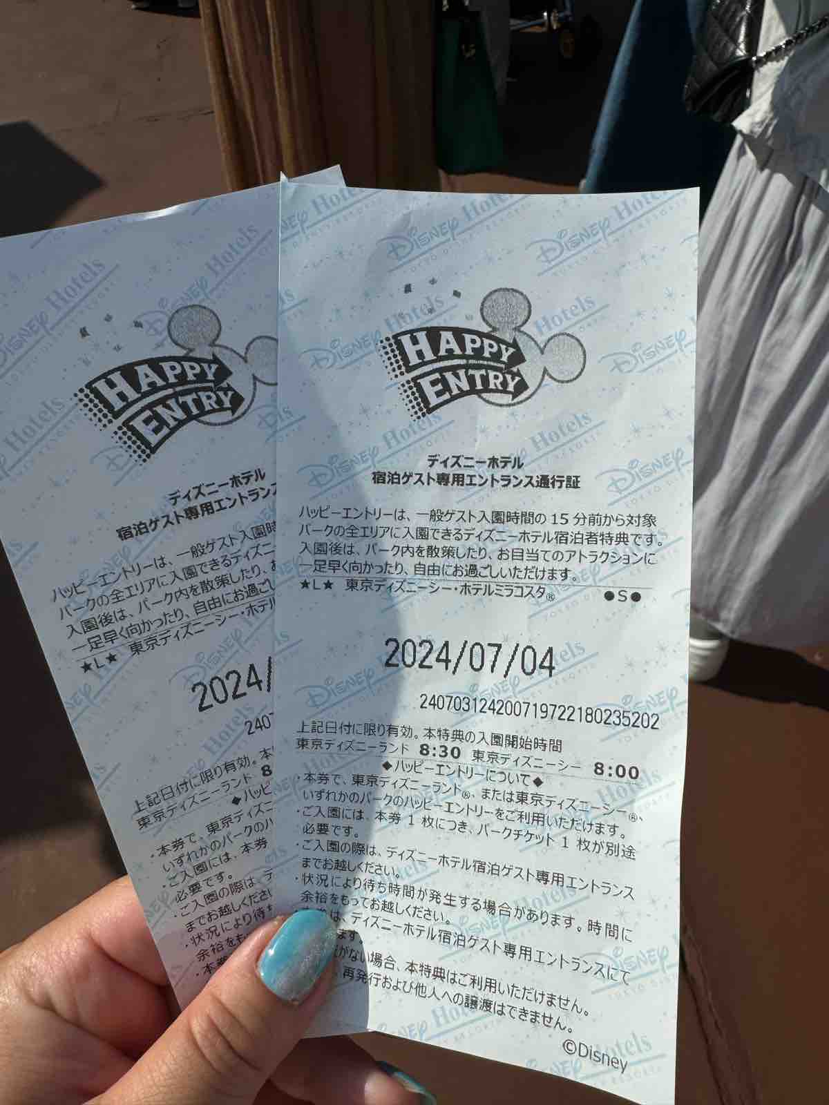 ミラコスタ宿泊なのでハッピーエントリーが使えますので8時には入園出来ます。
